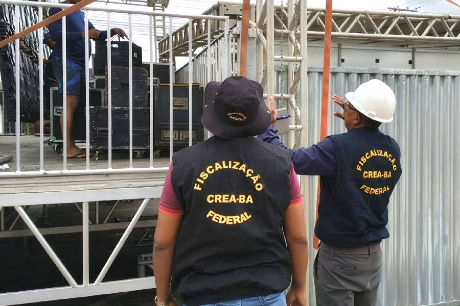 José Thiago, técnico do Crea-BA, integra a equipe responsável pelas análises estruturais. Ele explicou que o conselho mantém diálogo constante com engenheiros e responsáveis técnicos pela montagem, garantindo que cada etapa seja executada com responsabilidade e dentro dos padrões de segurança exigidos para eventos de grande porte.