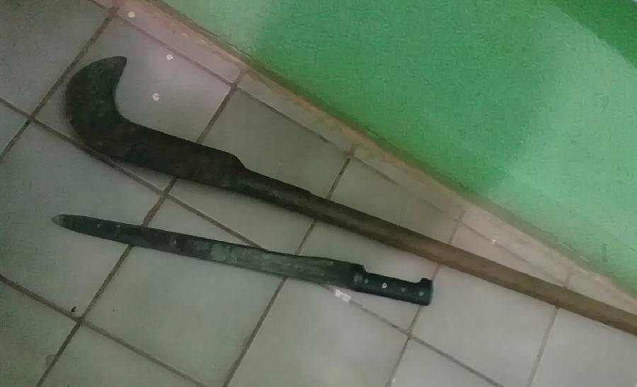 Ocorrência foi registrada por volta das 14h30, quando uma jovem de 21 anos acionou a PM e relatou ter sido ameaçada durante uma discussão. Segundo o depoimento, um homem de 43 anos teria usado uma faca para intimidá-la. Diante da situação, a jovem afirmou ter se armado com uma foice como forma de defesa, o que elevou o risco do confronto.
