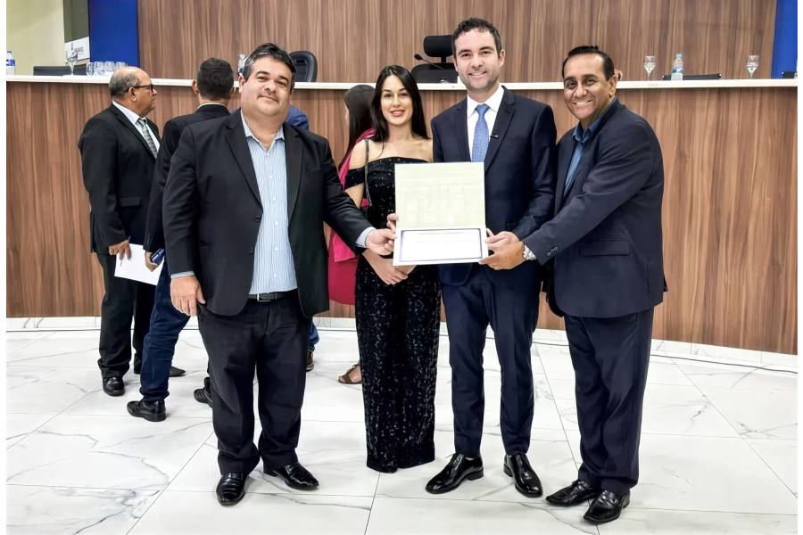Reconhecimento marcou a noite desta segunda-feira (23) na Câmara de Vereadores de Brumado. O prefeito Fabrício Abrantes recebeu Moção de Aplausos concedida pela Câmara Municipal de Vitória da Conquista pela realização do Carnaval. A homenagem, proposta pelo vereador Ricardo Babão, contou com a presença do presidente da Casa, Ivan Cordeiro, durante ato solene bastante prestigiado.