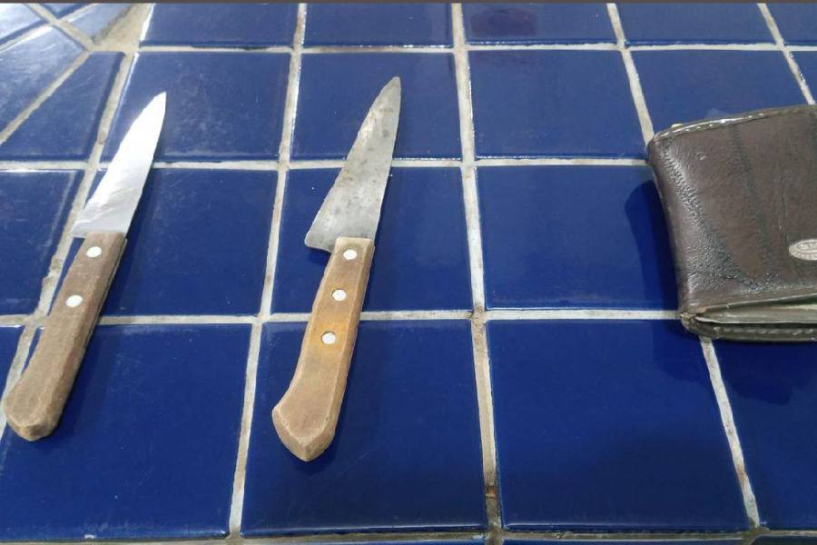 Vítima contou aos policiais que a confusão começou quando o namorado sugeriu o fim do relacionamento. Ao concordar com o término, ela passou a ser agredida com socos e empurrões. A jovem relatou que também sofreu intimidações enquanto o suspeito circulava armado com as facas dentro da casa.