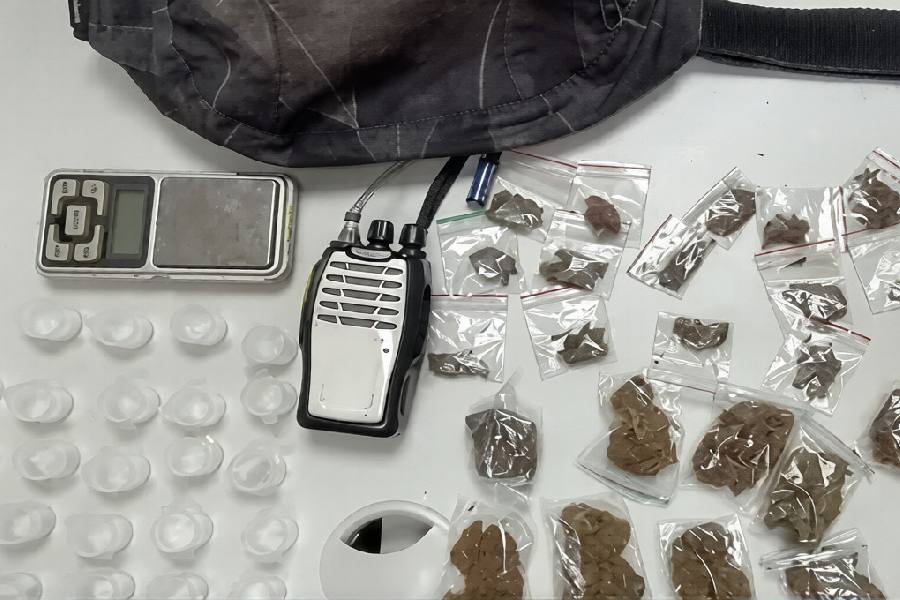Busca realizada na área levou à descoberta de uma bolsa com grande quantidade de entorpecentes. Foram apreendidas 77 porções de cocaína e 24 porções de maconha. Também foram encontrados um rádio comunicador e uma balança de precisão, itens associados à comercialização ilegal.