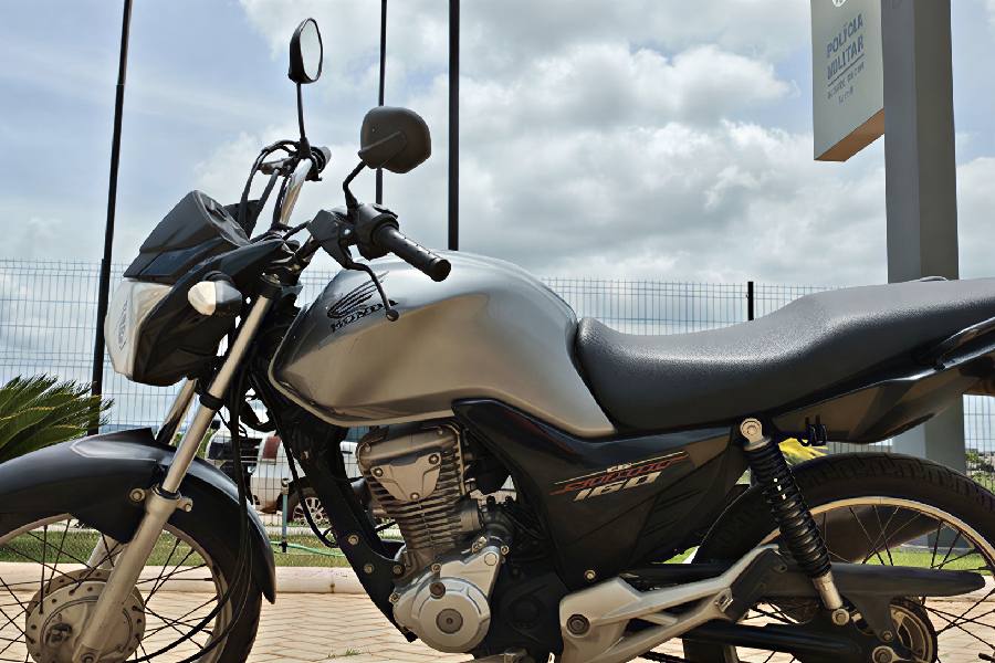 Verificação apontou irregularidades nos sinais identificadores. Policiais constataram indícios de adulteração tanto no motor quanto no chassi da Honda CG 160 Fan. Situação reforçou a suspeita de possível crime envolvendo o veículo.