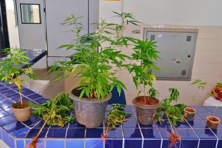 Ao chegar ao local, os policiais constataram que o portão estava aberto e que não havia ninguém na residência. Foi então identificada uma pequena plantação de maconha visível no interior do imóvel.