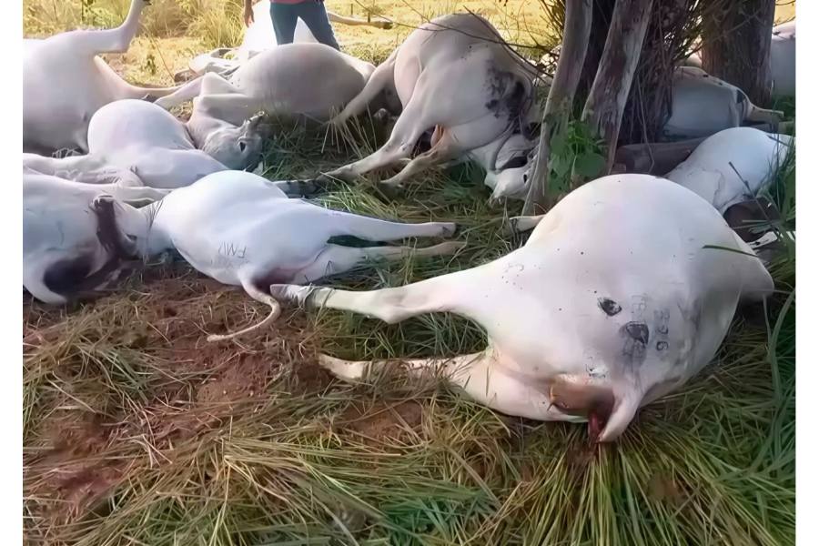 Tempestade intensa provocou uma cena de destruição no interior da Bahia após um raio atingir e matar 16 cabeças de gado na zona rural de Piripá. Caso ocorreu na noite de domingo e gerou grande prejuízo ao produtor, que perdeu parte significativa do rebanho de forma repentina.