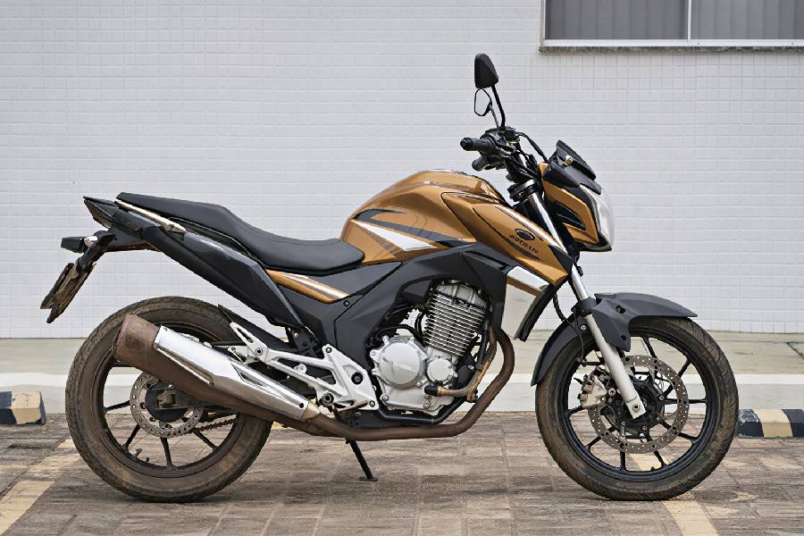 Os policiais identificaram uma motocicleta estacionada em via pública com a placa danificada, levantando suspeitas de adulteração. Após verificação detalhada, os sinais identificadores originais do veículo foram confirmados, constatando-se que se tratava de uma Honda Twister furtada em Brasília em 2021.