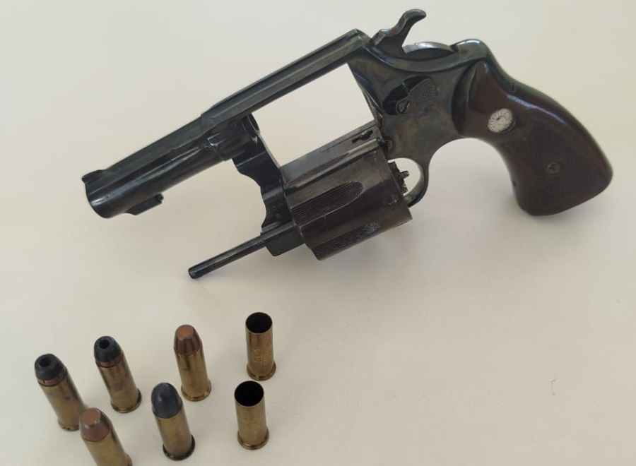 No local, os moradores negaram qualquer agressão. Porém, os policiais identificaram indícios de que havia uma arma escondida no imóvel. Durante as buscas, os agentes localizaram um revólver calibre 38, da marca Taurus, enterrado no quintal da residência do suspeito.