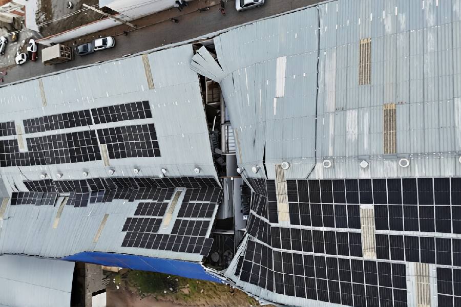 Chuva forte acompanhada de ventos provocou o desabamento parcial do teto metálico de uma escola provisória na Avenida Beneval Boa Sorte, em Guanambi, por volta das 12h30 desta terça-feira (24). Estrutura abrigava a Escola Municipal Emília Milla de Castro e um depósito de equipamentos da Secretaria de Educação.