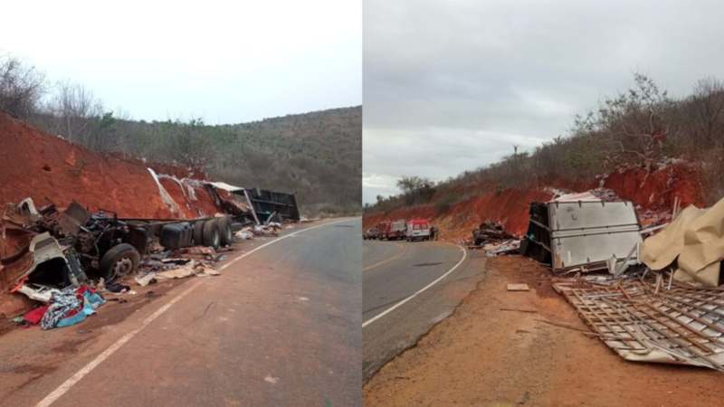 Veículo ficou completamente destruído, assim como toda a carga transportada, que se espalhou sobre a pista, dificultando a passagem de outros veículos. Condutor sofreu apenas arranhões leves e foi atendido pelo Serviço de Atendimento Móvel de Urgência (SAMU) no local do acidente.