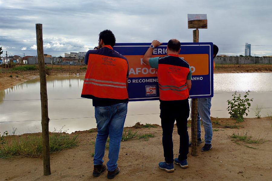 Alerta de risco mobilizou autoridades em Vitória da Conquista neste sábado (28). A Defesa Civil intensificou a sinalização em uma bacia de contenção no bairro Vila América após identificar perigo de afogamento, principalmente entre crianças que podem se aproximar da área.