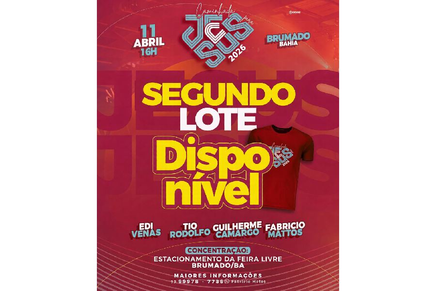 Organização da Caminhada para Jesus anunciou a abertura do segundo e último lote de camisetas do evento em Brumado. Venda começou na noite de sexta-feira (27) e já movimenta participantes que desejam garantir presença na tradicional manifestação de fé.