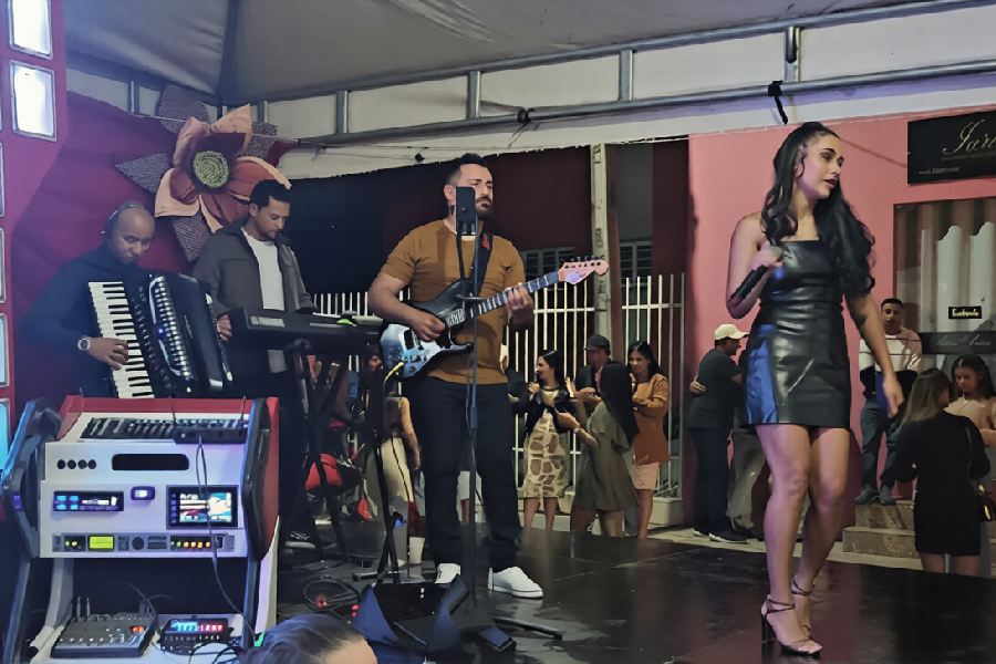 Apresentação aconteceu durante evento cultural que valorizou tradições da região. No palco, músicos entregaram um repertório envolvente, resgatando o forró tradicional com qualidade e energia, conquistando rapidamente a atenção e participação do público presente.