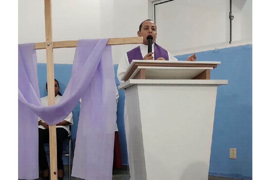 Durante a homilia, o padre Matheus Augusto ressaltou a importância da fé diante das adversidades. Ele reforçou que a confiança em Deus deve permanecer firme mesmo nos momentos mais difíceis, levando esperança aos presentes.
