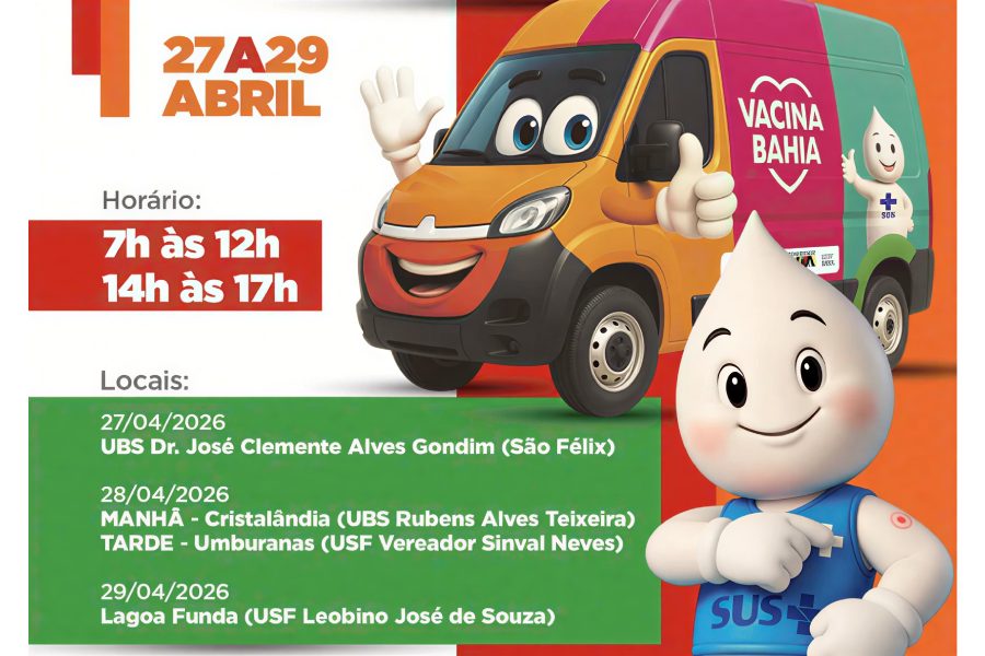 Na terça-feira (28), o Vacimóvel atende pela manhã na UBS Rubens Alves Teixeira, no bairro Cristalândia, a partir das 7h. À tarde, a equipe segue para a comunidade de Umburanas. O atendimento será realizado em frente à USF Vereador Sinval Neves, a partir das 14h. A logística foi planejada para alcançar diferentes regiões do município em dias consecutivos.
