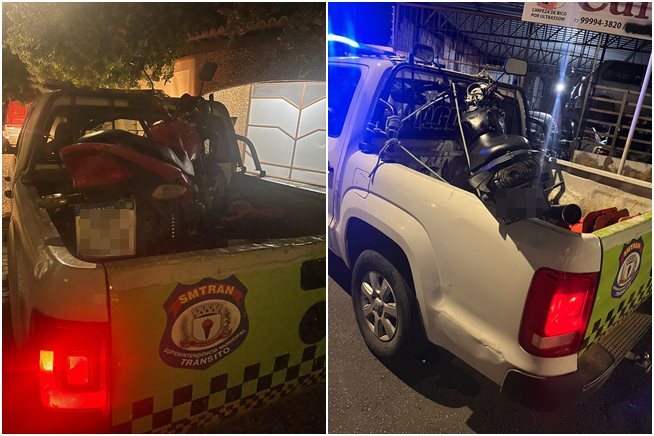 A primeira apreensão ocorreu nas proximidades da Rua 1º de Maio, após denúncias de que uma moto estaria estacionada no mesmo local havia três dias. Durante a verificação, os agentes constataram que o veículo apresentava restrição administrativa e licenciamento em atraso. A motocicleta foi removida para o pátio da Smtran.