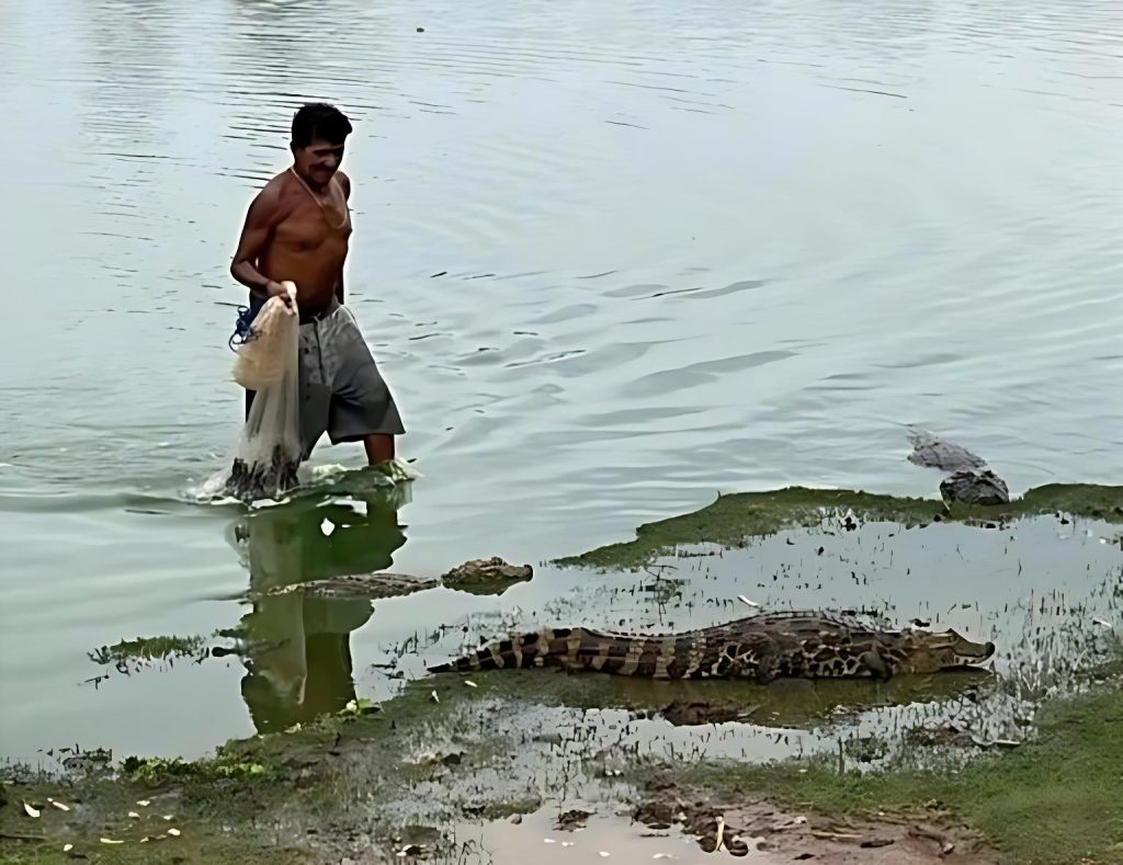 Moradores que estavam no local ficaram incrédulos com a tranquilidade do pescador. Nas imagens, ele caminha pela água como se nada estivesse acontecendo, enquanto os jacarés observam atentos, sem demonstrar agressividade. O vídeo rapidamente se espalhou nas redes sociais e gerou centenas de comentários sobre o risco da atitude.