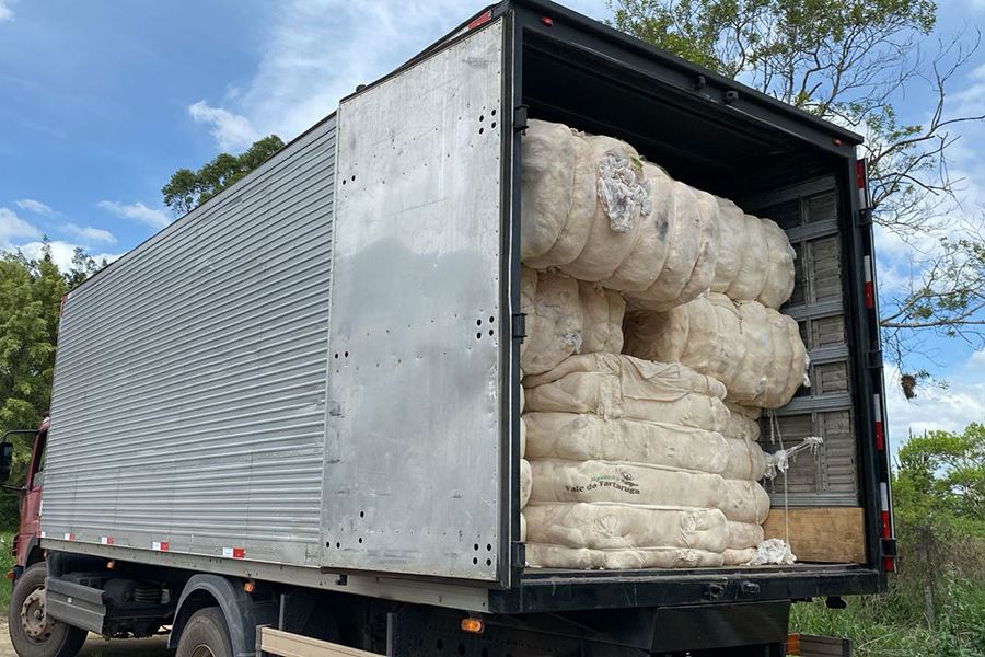 A equipe identificou um volume expressivo de produtos sem qualquer documentação fiscal. Policiais encontraram oito sacos com ataduras e estopas, cada um pesando cerca de 230 quilos. O total ultrapassa 1,8 tonelada de material. Os militares localizaram também duas caixas de molas automotivas, todas sem nota fiscal.