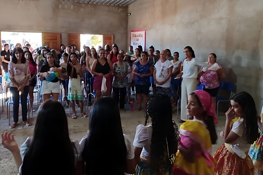 Encontro serviu como ponto de partida para a criação artística. Pela manhã, o grupo realizou entrevistas e experiências imersivas com moradoras de Samambaia. Pela tarde, promoveu uma roda que reuniu mais de 100 participantes da região, fortalecendo vínculos e memórias compartilhadas.