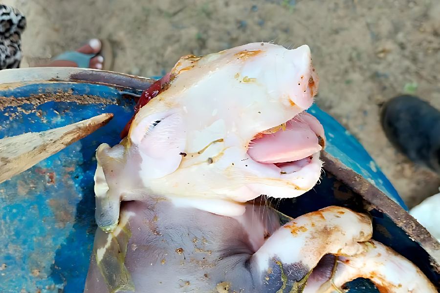 Nascimento raro chamou atenção no sábado (20) em um sítio no entorno do distrito do Julião, em Malhada, no sudoeste da Bahia. O filhote de suíno nasceu por volta das 18h, na granja Castelo Branco, com duas bocas, dois focinhos e duas línguas, segundo o proprietário Fábio da Silva Conceição. Imagens do animal circularam nas redes sociais e causaram surpresa na comunidade rural.