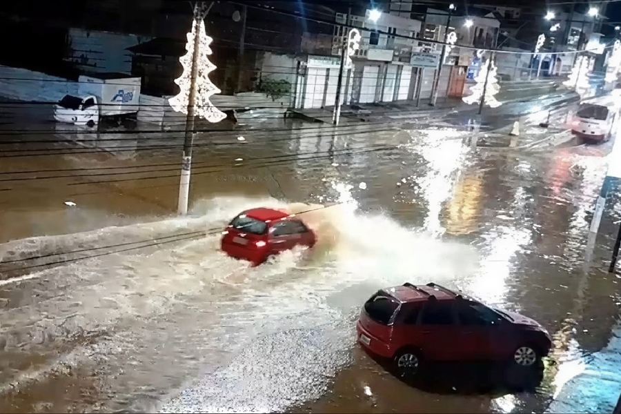 A força da água evidenciou dificuldades no escoamento da chuva, especialmente em áreas mais antigas e com relevo acentuado. Alerta permanece para as próximas horas. A previsão indica possibilidade de mais chuva, o que mantém o risco de novos alagamentos.