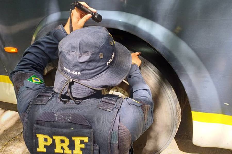 Fiscalização da Polícia Rodoviária Federal identificou múltiplas irregularidades em um ônibus de passageiros na manhã deste domingo (25), na BR-101, em Teixeira de Freitas (BA). Durante a abordagem, policiais perceberam que três pneus do veículo estavam desgastados, oferecendo risco iminente à segurança viária.