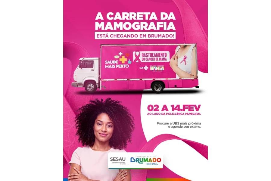 Brumado terá a Carreta da Mamografia em operação entre os dias 02 e 14 de fevereiro, em parceria da Prefeitura com o Governo do Estado. A unidade móvel de saúde funcionará ao lado da Policlínica Municipal Manoel Fernandes, no bairro Malhada Branca, oferecendo exames preventivos e suporte diagnóstico especializado às mulheres da cidade.