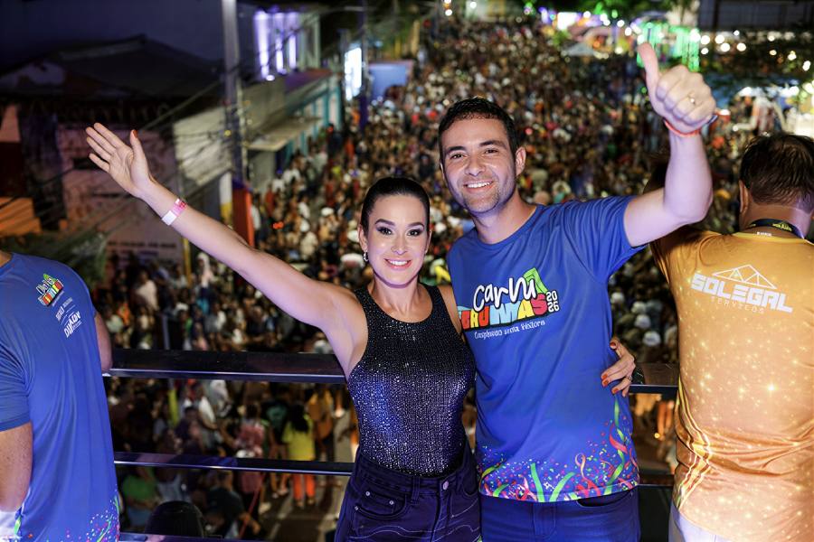 Autoridades abriram oficialmente a programação às 19h, no Camarote da Acessibilidade. Prefeito Fabrício Abrantes (Avante), primeira-dama Abiara Dias, secretários e lideranças participaram do ato simbólico. Palco principal recebeu a coroação do Rei Momo e da Rainha do Carnaval, além da entrega da chave da cidade, gesto que oficializou o início dos festejos.