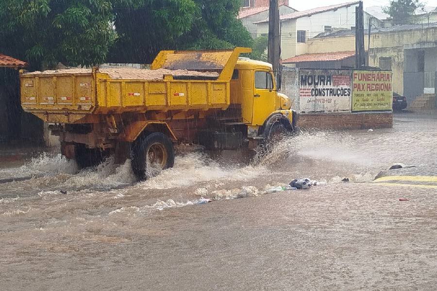 Ruas centrais ficaram rapidamente alagadas com o grande volume de água acumulado. A circulação de veículos se tornou arriscada, exigindo atenção redobrada dos motoristas. Em alguns trechos, a visibilidade caiu drasticamente, aumentando o risco de acidentes e deixando o trânsito lento durante a tempestade.
