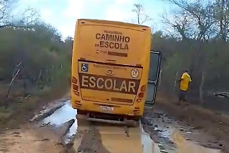 Dona de casa Leonor Pereira contou que estudantes estão faltando às aulas por não terem como sair do local. Alunos ficaram isolados. Pais e responsáveis dizem que a situação compromete o ano letivo e prejudica famílias que dependem do transporte escolar para manter as crianças na escola.